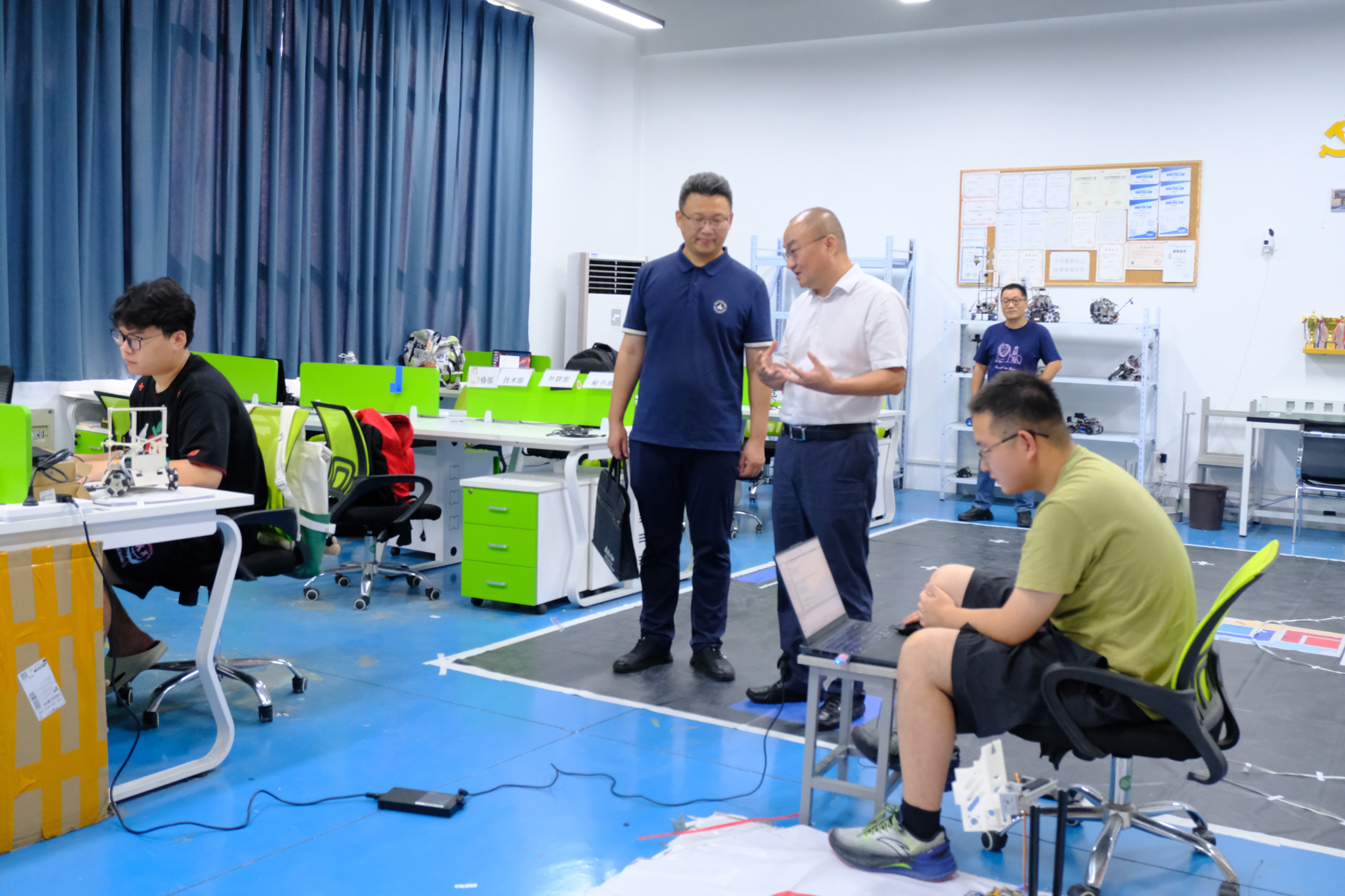 会前,副院长黄继刚陪同刘轩秘书长一行参观了太阳成集团tyc234cc科创实验室,现场观摩了学生团队的创新项目。刘轩秘书长对学院将产学研紧密结合、为科技创新提供良好实践基础的做法给予高度评价。