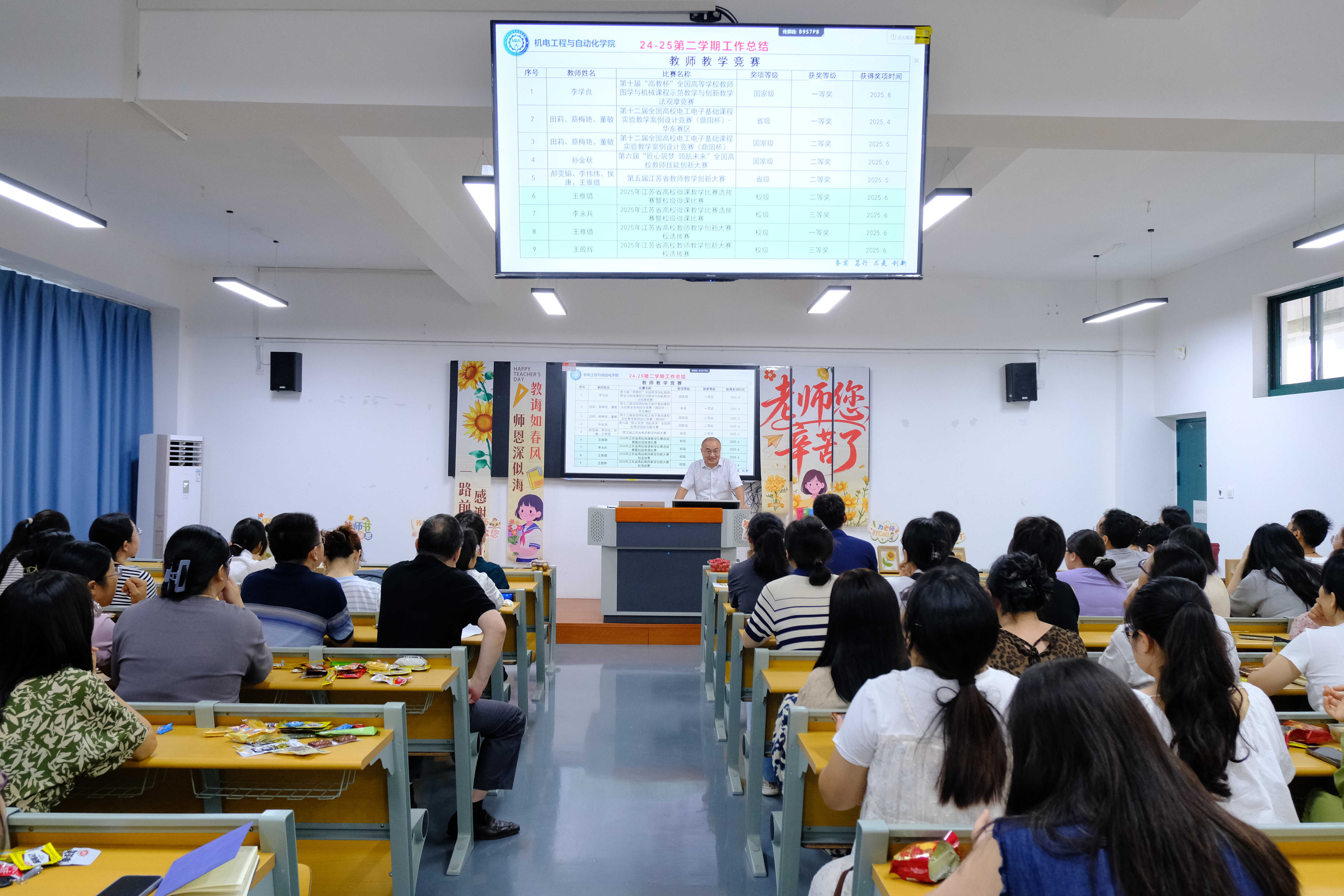 随后,副院长黄继刚对上一学期的教学工作与科研竞赛成绩进行了全面总结,面对新学期,他提出以“扩影响、抓落地”为核心深化产教融合,持续推进学科交叉团队建设与课程群改革;聚焦“讲好课”的根本任务,倡导精简内容减轻负担,简化形式突出核心,聚焦能力提升课堂实效的“减负、简化、聚焦”三原则。他强调,所有教学工作须紧扣应用型优秀工程师培养目标,夯实学生“端饭碗”的专业能力。