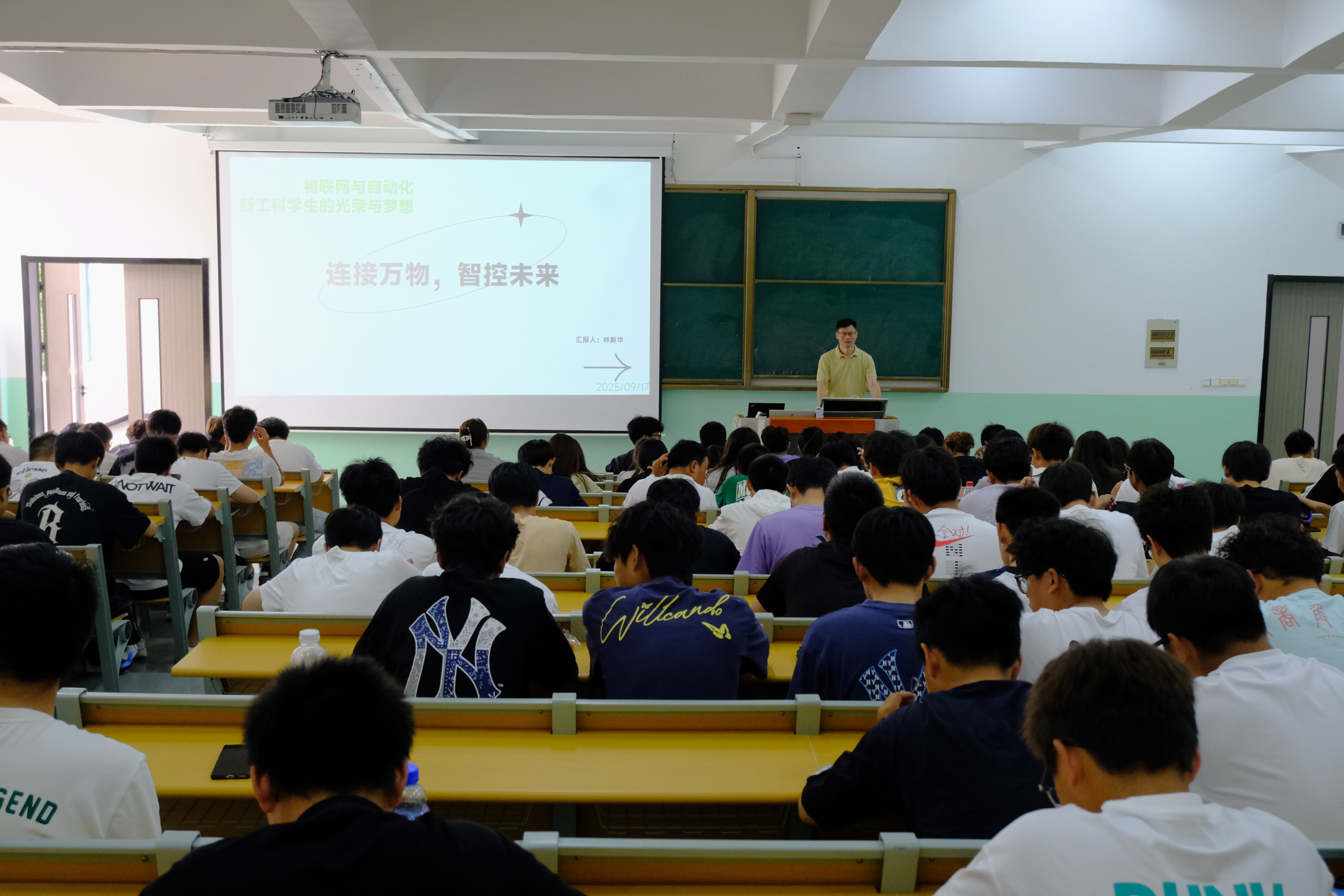 林新华高级工程师为物联网工程与自动化专业的新生带来了《连接万物,智控未来》的主题报告。林工结合自身丰富的工程实践经验,系统介绍了物联网技术在智慧城市、智能交通、工业自动化等领域的广泛应用。同时勉励同学们把握时代脉搏,夯实专业本领,勇担建设智慧中国的时代使命。